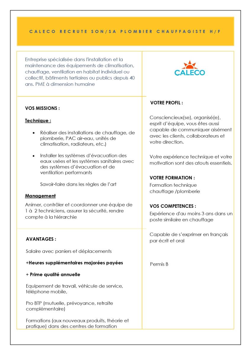 VOS COMPETENCES : Expérience d'au moins 3 ans dans un poste similaire en chauffage