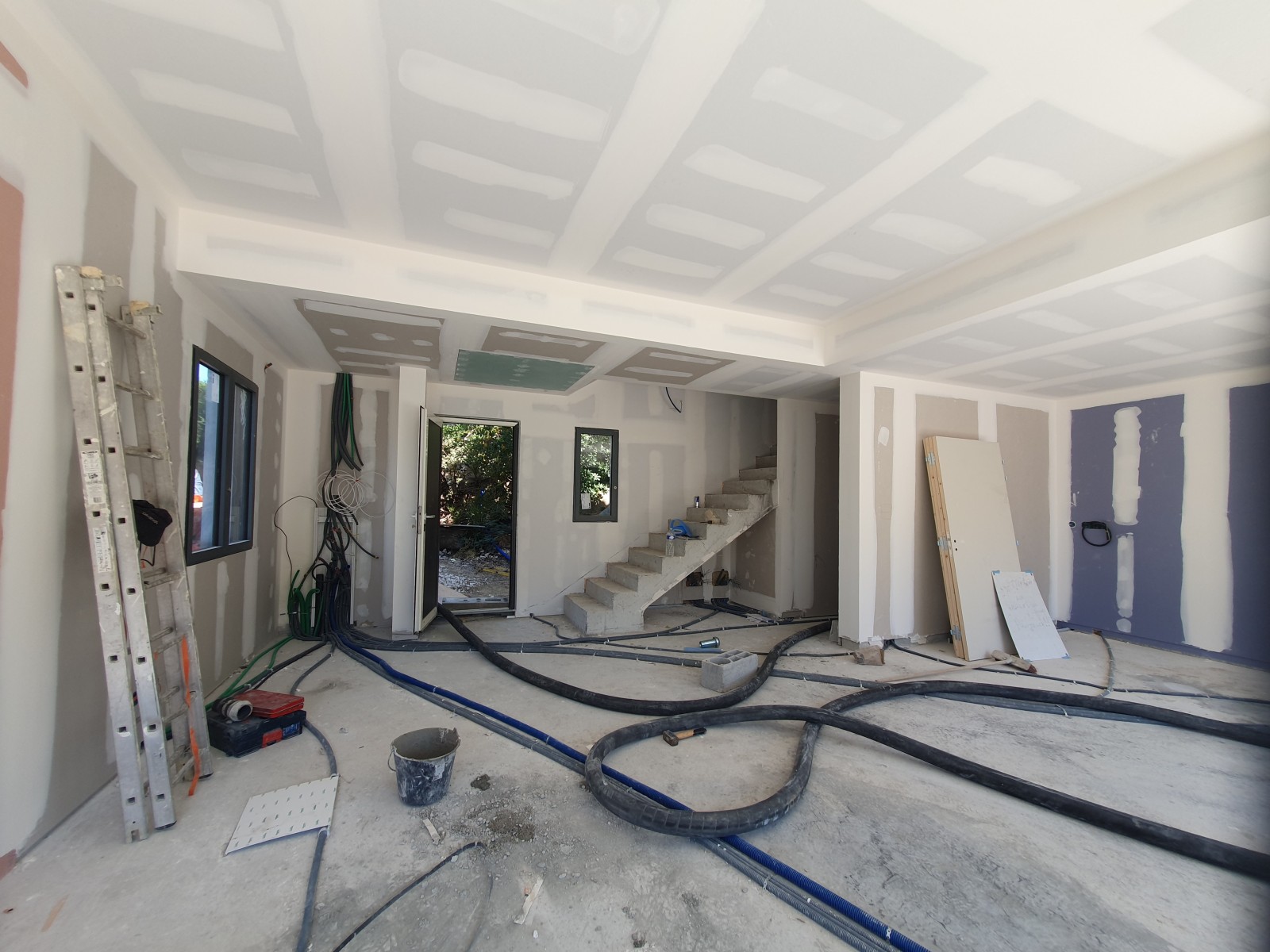 Visite de chantier de notre conducteur des travaux chauffage climatisation d'une villa en cours de construction au Rayol Canadel.