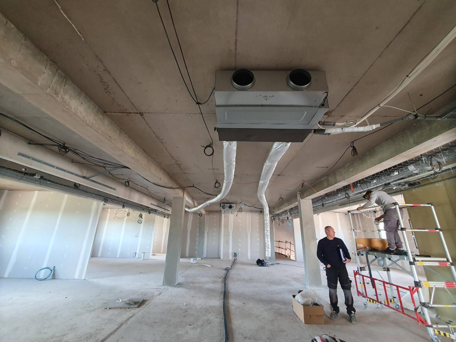 - installations des gainables et des caissons de ventilation avant pose des faux-plafonds