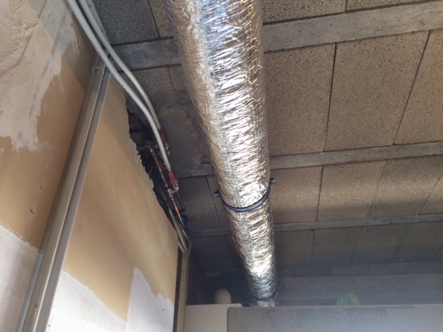 Nous avons gainé l'air froid rejeté par le ballon vers l'exterieur, de façon à ne pas trop baisser la température du garage et de réduire le niveau sonore.