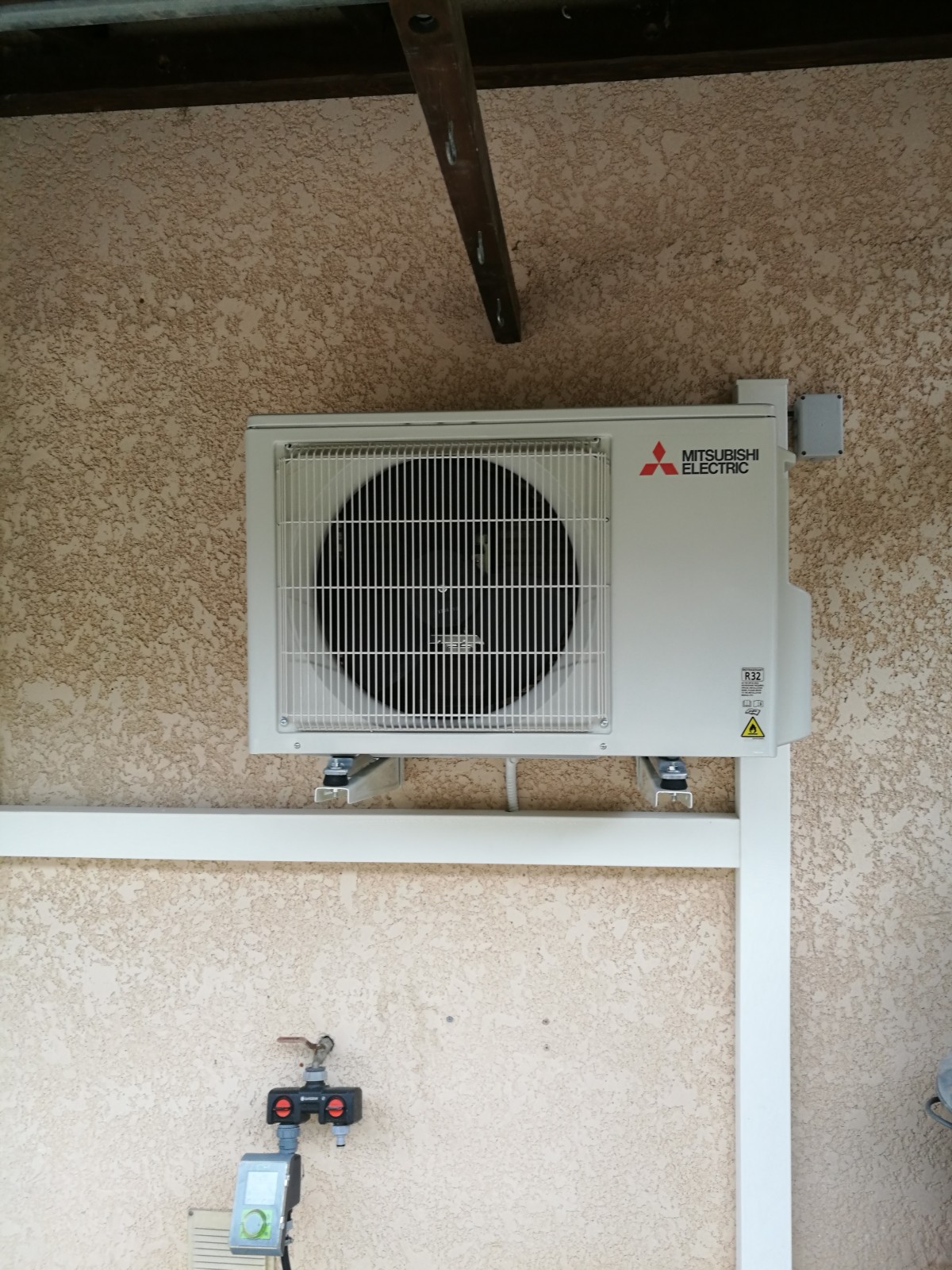 Mise en place d'une pompe à chaleur air air multisplit 2F44 Alimentant deux unités murales MSZAP15 pour chauffer et rafraîchir deux chambres ainsi que la pose d'un monosplit type console MSZKA35 pour le salon