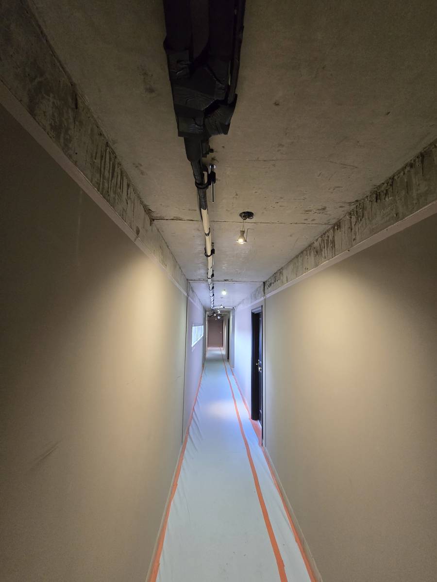 Dans un premier temps, nos techniciens chefs d’équipe ont réalisé le remplacement des liaisons frigorifiques existantes. Cette opération a nécessité la dépose partielle des faux plafonds dans les couloirs des parties communes ainsi qu’au sein des appartements.